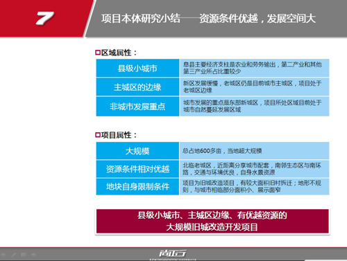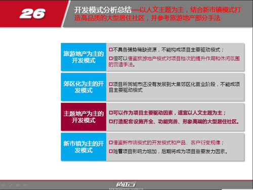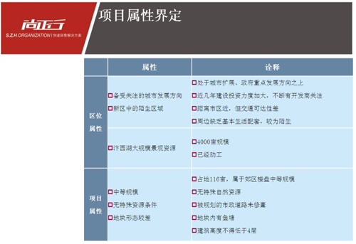 項目背景:農(nóng)業(yè)縣城郊結(jié)合處區(qū)水庫改造項目,有城中村拆遷影響。根據(jù)區(qū)域?qū)傩院晚椖繉傩匝芯?,確定區(qū)域未來將以休閑、購物、居住為主要發(fā)展特征,結(jié)合縣級市場郊區(qū)大規(guī)模開發(fā)樓盤案例研究,為項目指出主題人文+新市鎮(zhèn)發(fā)展模式,解決項目核心驅(qū)動、盈利模式等開發(fā)問題。