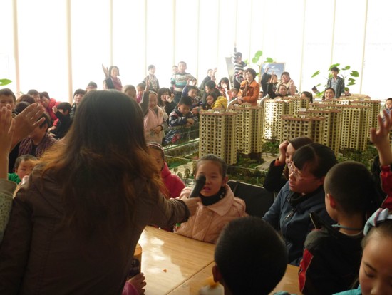 活動當(dāng)天天氣不錯,是最近一段時間少有的好天氣。通知的活動開始時間是下午兩點半,讓我們始料未及的是剛過了一點鐘就有客戶帶著小朋友來到了售樓部,于是現(xiàn)場人員抓緊時間開始客戶的接待工作,接下來其他的小朋友們也陸續(xù)來到了售樓部,到場的人數(shù)超過了我們的預(yù)期,四十多個小朋友加上各位家長,把售樓部擠得滿滿的。