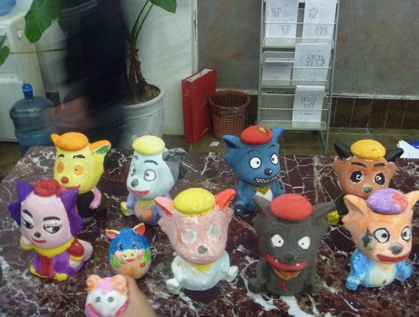 活動的第三項便是我們的“石膏上色DIY活動”了,我們?yōu)樾∨笥褌儨蕚淞烁魇礁鳂拥男∈?,有十二生肖的、灰太狼的等,小朋友領(lǐng)到小石膏、畫筆、顏料后,在爸爸媽媽的輔助下開始了緊張的創(chuàng)作,積極描繪著自己心目中的石膏小形象。