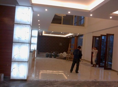 吧臺區:很別致的造型,暗紅色的毛絨墻壁鑲嵌在各種石材中間,顯的更加有品味。