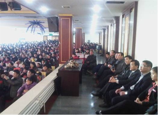 可容納600人的會場沒有一個空位,走道上也加了座椅,部分客戶是坐大巴過來的,還有一部分是自己過來的,晚來的客戶擠在門口的位置聽著講解。由此而見,中央華府項目倍受客戶關注。