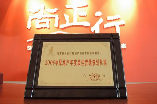 祝賀:尚正行榮獲2006中原地產(chǎn)年度最佳營銷策劃機(jī)構(gòu)