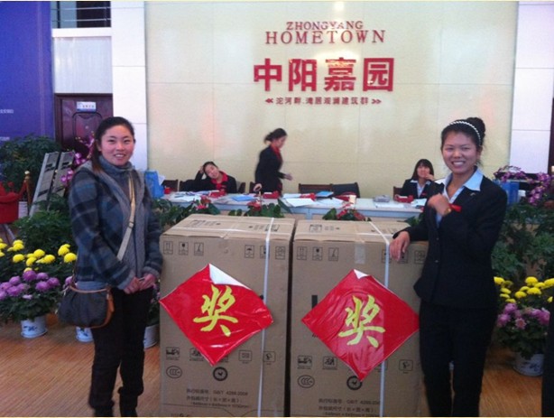 11月3日:永城市中陽嘉園售樓部舉行盛大認籌活動。一大早,到訪的客戶就絡繹不絕,售樓部工作人員全體出動,接待來訪、認籌客戶,解答客戶疑問,幫助客戶簽約、抽獎,各項工作進行的有條不紊,忙的不亦樂乎。 前來認籌的客戶準備抽獎,各種獎品擺在售樓部門前煞是誘人啊!買房還送家電,讓一向勤儉節約的永城老鄉怎能不熱情高漲呢!看看這抽獎場面,能有些意外的驚喜總是好的,,,,,,