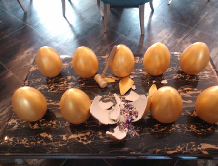 2013年3月9日:為回饋中央華府的新老客戶們對我們的支持和厚愛,售樓部特舉辦“快樂周末砸金蛋”活動,凡當日光臨我們售樓部的客戶均可參加砸金蛋活動,獲取我們送出的千元大獎,希望能為客戶們的周末帶來一絲驚喜和愉悅。 上午九時,售樓部的工作人員已全部到位,一切準備就緒,等待客戶們的到來。。。。。。金燦燦的金蛋正在等待客戶們的“錘”愛,似乎一個個大獎在向他們招手!砸到大獎的客戶和我們的經理合影留念,相信好運氣會伴隨她度過這個美好的周末,祝賀她,,