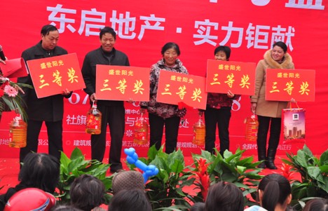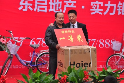 11月23日上午11時,最為激動人心的還是抽獎環節開始了,本次活動設一等獎1名是洗衣一臺,二等獎2名自行車一輛,三等獎5名金龍魚食用油一桶。部分客戶喜得大獎,歡天喜地,而沒有抽到獎品的客戶,也有盛世陽光項目部為大家準備的精美禮品和1000元房源優惠大獎,當天上午到訪的近500組客戶在一片歡聲笑語中滿意而歸,為盛世陽光在社旗打開局面奠定了良好基礎,塑造樹立東啟地產的品牌知名度和美譽度。