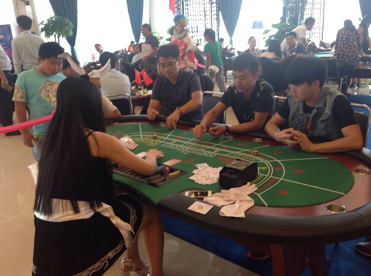現場由兔女郎荷官坐鎮,按照國際規則為客戶分發籌碼,籌碼在最終決賽時是評判玩家輸贏的依據。下午進行賭神大賽正式比賽,統計玩家手中的籌碼,前10名的客戶進入最終的PK賽,決出冠、亞、季軍,前三名都有精美禮品相送。