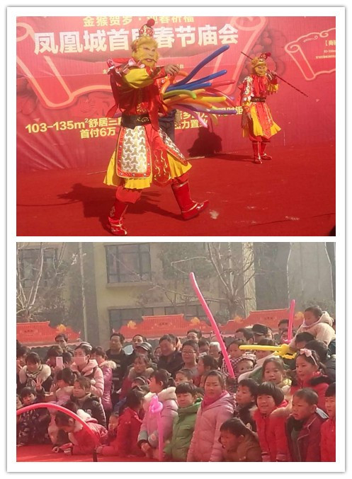 猴年大戲怎么能少得了悟空呢,美猴王派發(fā)魔術(shù)氣球,一度引起臺(tái)下小伙伴的熱搶。