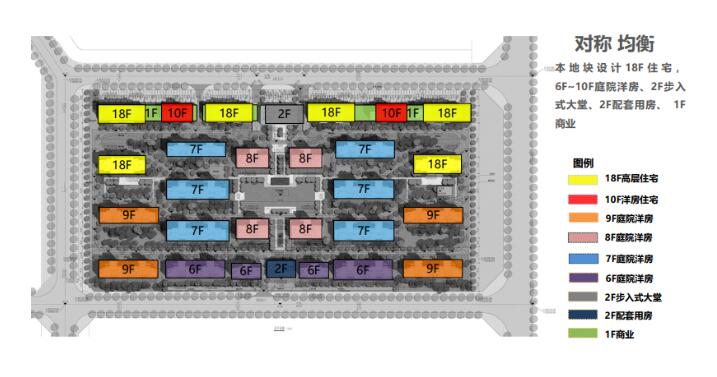 雙蕊:從這個(gè)規(guī)劃圖上可以看出來(lái),就它的整個(gè)地塊是以洋房產(chǎn)品為主的,就是有20棟洋房,6棟小高層。并且它這個(gè)小高層規(guī)劃的也比較巧妙,就是它的高層全部分布在整個(gè)小區(qū)的北邊。也就是說(shuō),像高層的業(yè)主,他可能從北大門進(jìn)去,直接就到了他這個(gè)家門口。更多的這個(gè)小區(qū)的空間其實(shí)是全部給到了這個(gè)洋房的業(yè)主,可以說(shuō)是占了這個(gè)小區(qū)總?cè)丝诘囊恍“氲难蠓繕I(yè)主,享受了這個(gè)小區(qū)絕大部分的綠化空間和公共的空間,這個(gè)是比較合理的。