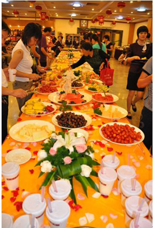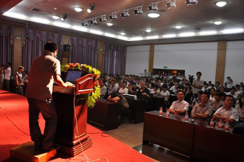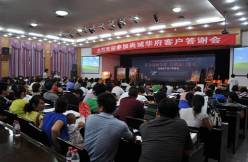 然而,等到下午5點(diǎn)鐘的時(shí)候,蜂擁而至的客戶已經(jīng)打消了我們的疑慮,客戶的熱情并沒(méi)有因?yàn)橄掠甓粷矞纾蛻舸鹬x會(huì)順利開(kāi)始。尚城華府客戶答謝會(huì)的會(huì)場(chǎng)選在鞏義市最高級(jí)別的鞏義市賓館舉辦,會(huì)議正式開(kāi)始前,為客戶準(zhǔn)備了豐盛的冷餐酒會(huì),到場(chǎng)的客戶先到餐廳就餐,然后再到位于三樓的會(huì)場(chǎng)參加產(chǎn)品說(shuō)明會(huì)。
